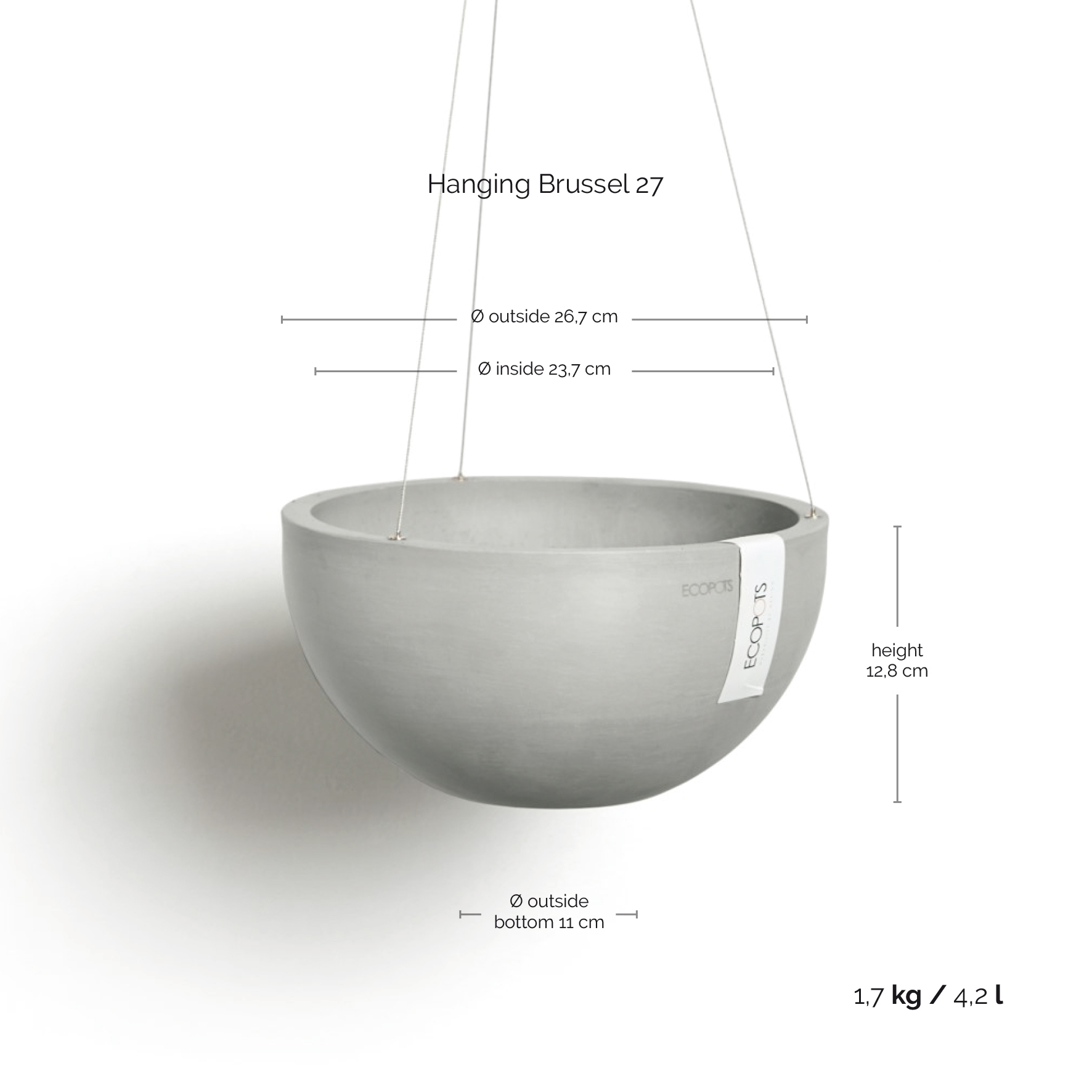 Кашпо Brussels подвесное, d 27 h 13 v 4,2, цвет - серый светлый