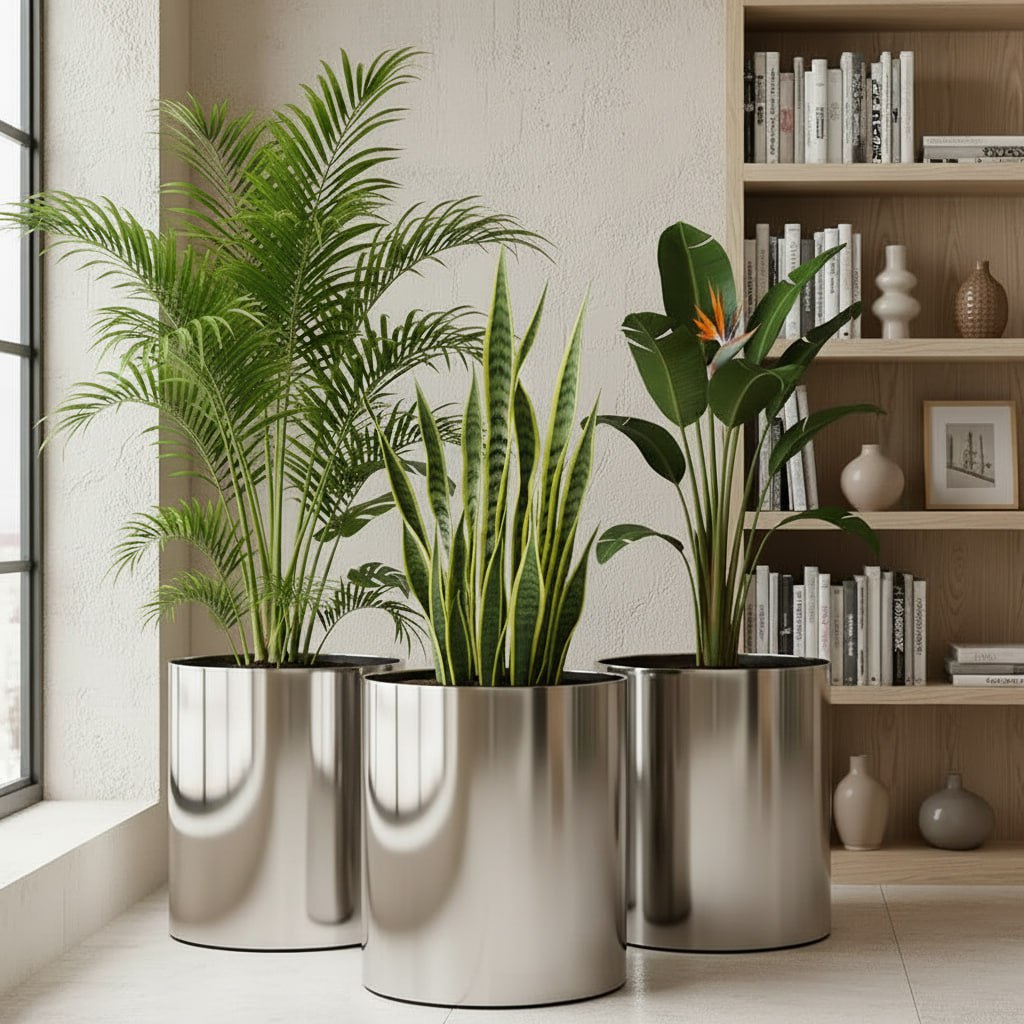Кашпо металлическое Цилиндр, d 50 h 50 v 98, цвет - серебро