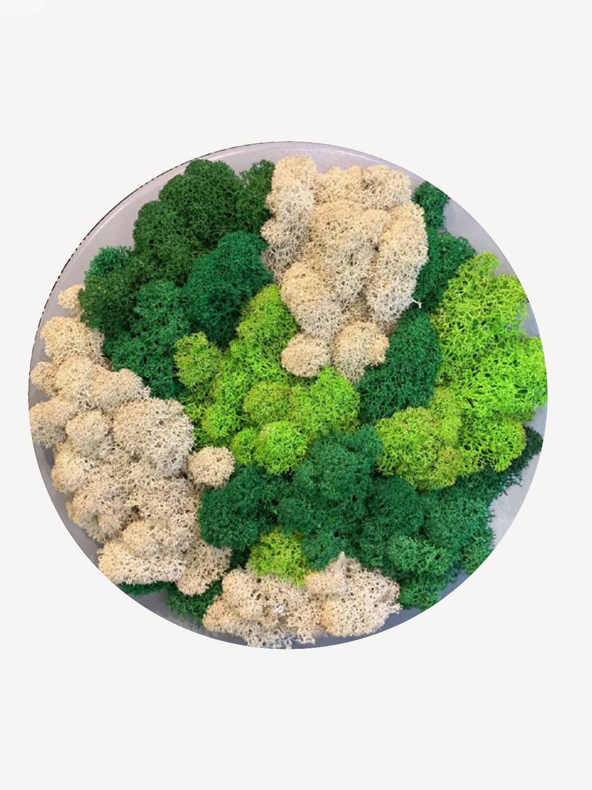 В производстве фитокартин мы используем живой стабилизированный мох из проверенных отечественных питомников, за качество которого отвечаем. Натуральное растение проходит специальную обработку, при которой природный сок замещается раствором на основе глицерина. Благодаря технологии стабилизации мох сохраняет мягкость, эластичность и упругость, как живое растение, на несколько лет, не требует ухода, полива и света. При всем этом на вид растение не отличается от живого мха.