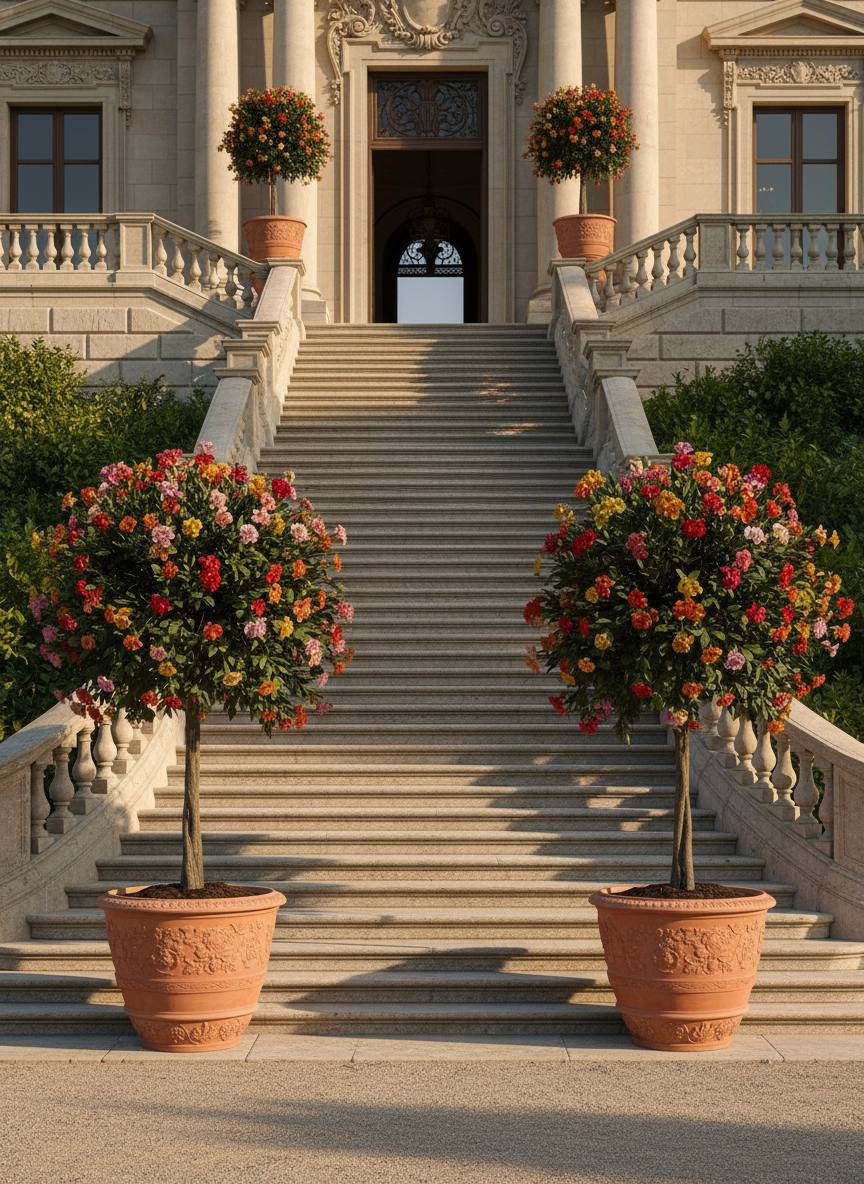 Размер 92 × 70 см делает эту модель заметным акцентом как в частных резиденциях, так и в премиальных коммерческих пространствах. Вазон подходит для декоративного зонирования, оформления уличных зон и размещения акцентных растений, а его форма и визуальный характер позволяют использовать изделие как полноценный элемент высокого ландшафтного дизайна.