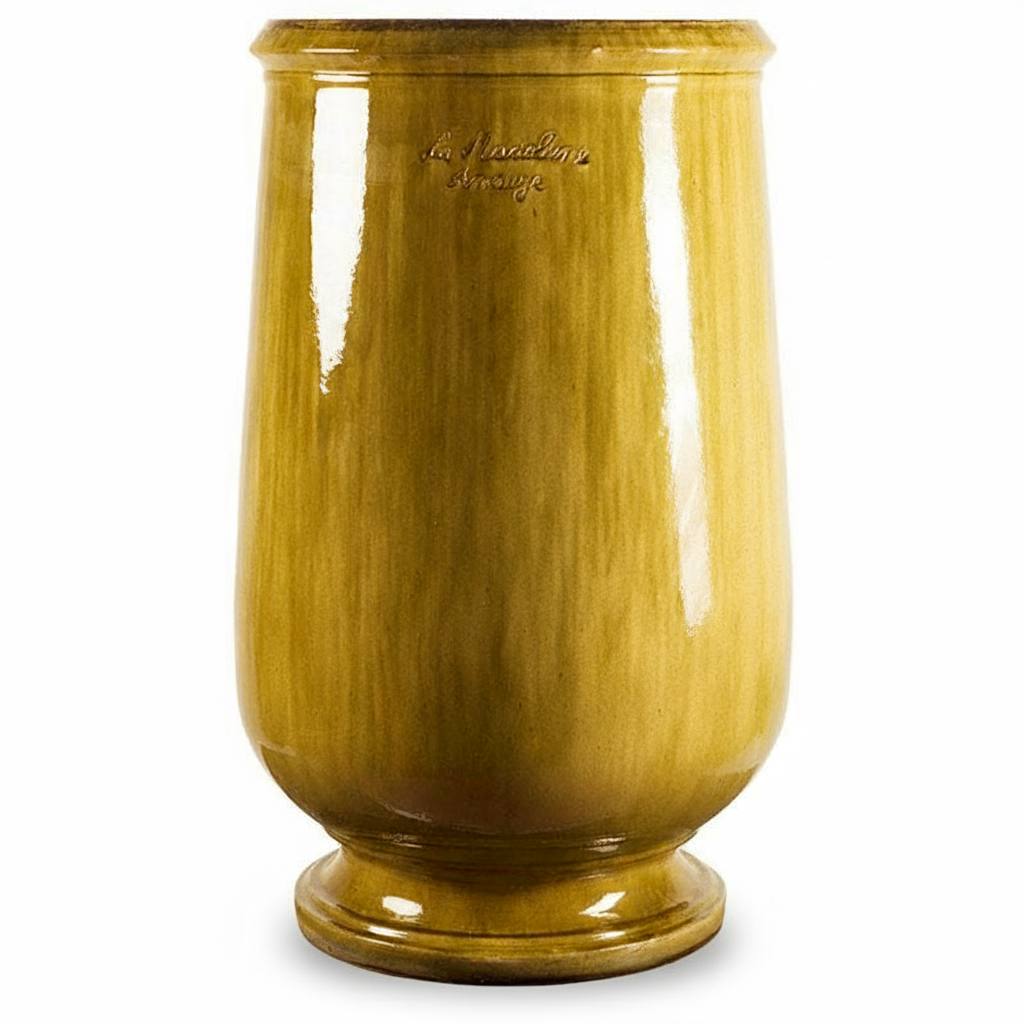Элегантный силуэт с активным изгибом у основания и отсутствие декора делают эту модель чистым холстом, открытым для дополнения цветочными композициями. На гладкой конусной поверхности Кувшина де Юле в полной красоте раскрываются удивительные цвета глазури. Модель будет органично выглядеть и в одиночку, и в композиции, с растением и без. Французы же предпочитают использовать эту модель для высадки цитрусовых.