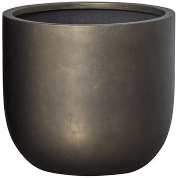 Поверхность кашпо выдает себя за натуральный камень (с трещинами и шероховатостью). Однако материал, из которого она сделана, - файбергласс - искусственно созданный. В состав файбергласса входят песок, каменная крошка, дробленное стекло, смолы. Такое сочетание наделяет файбергласс особой прочностью, отсюда же и его способности к имитации.