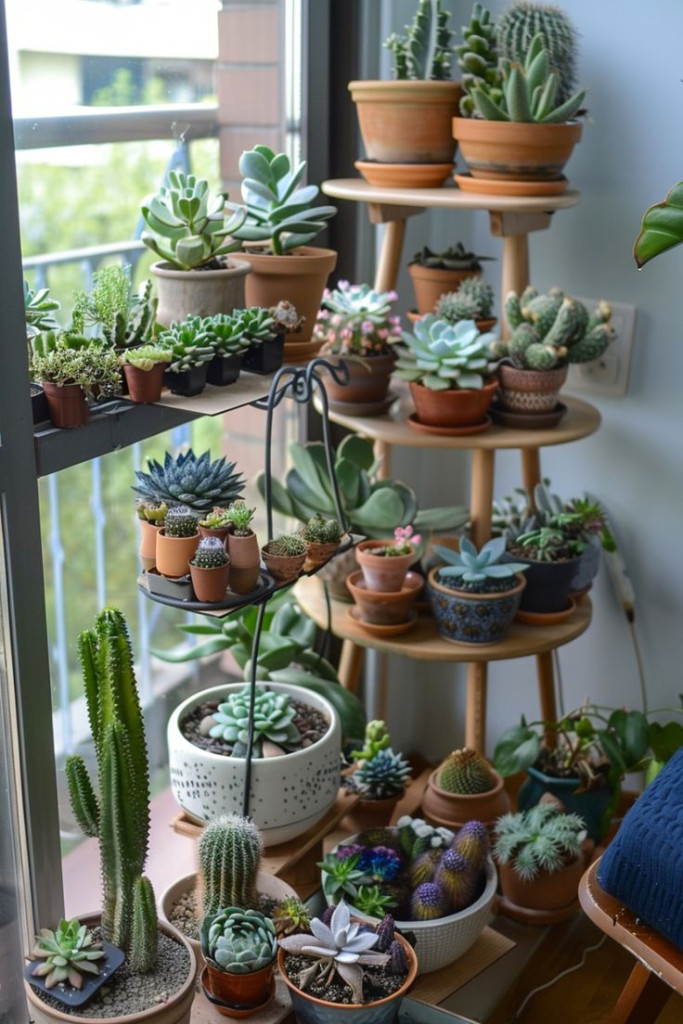 - Кактусы и суккуленты: отлично подходят для помещений с ярким солнечным освещением, так как обычно не требуют частого полива и хорошо переносят солнечные лучи.