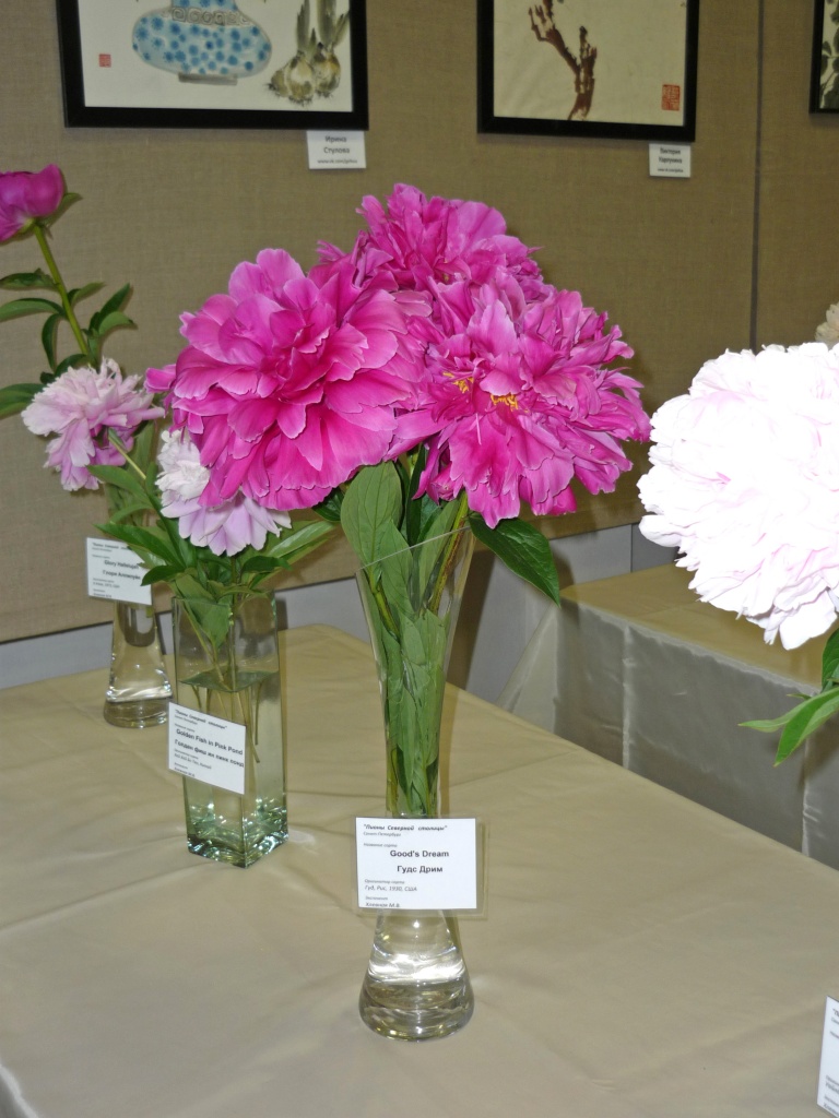 Выставка проходит в отдельном павильоне с тремя залами, каждый из которых имеет уникальное оформление. Здесь можно обнаружить более 250 сортов пионов всевозможных форм и расцветок. Некоторые из них вызывают такое восхищение, что на них можно любоваться бесконечно долго. Больше всего внимание привлекают цветочные инсталляции, подобранные по цветовой гамме и выставленные на фоне картин с изображением пионов.